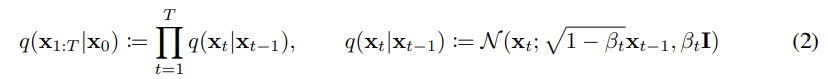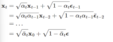 - 따라서 x_0로 부터 만들어지는 x_t의 값을 다음과 같이 나타낼 수 있다.