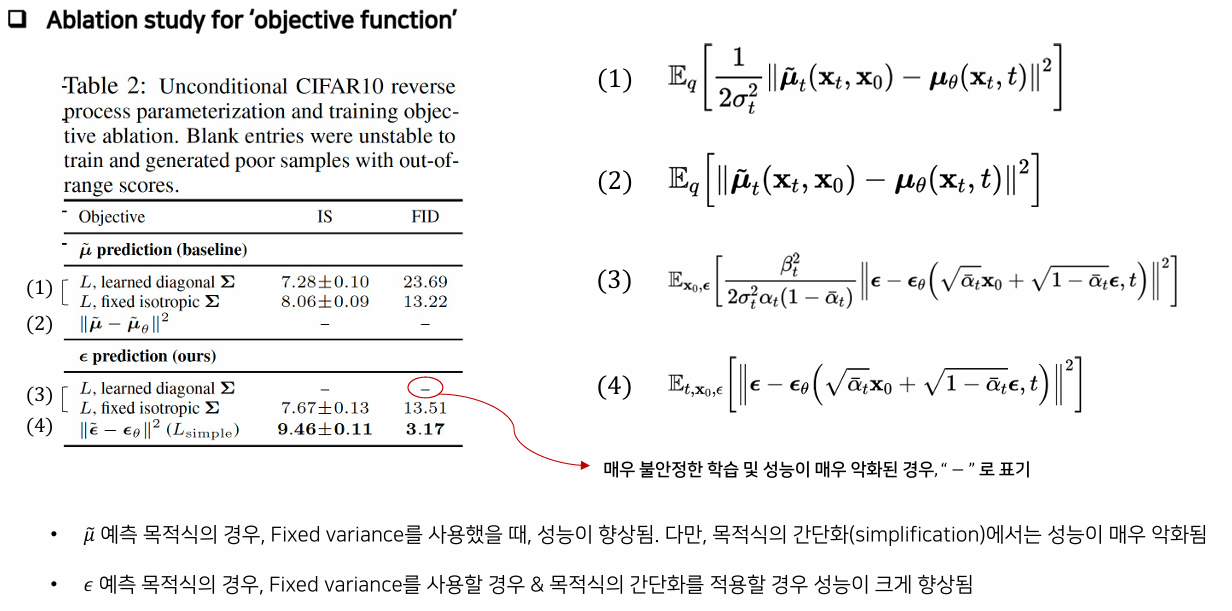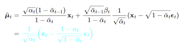 - 표준편차 값은 beta_t는 상수로 고정하기에 학습으로 바뀌지 않는 값으로 무시할 수 있다.