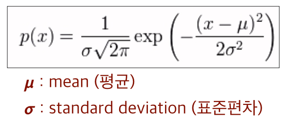- 두번째 줄 : Gaussian Distribution 식을 활용하여 나타냄
