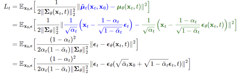 -> 논문의 목표는 이러한 Diffusion 모델의 loss 값을 아래의 식으로 바꾸는 과정이다.